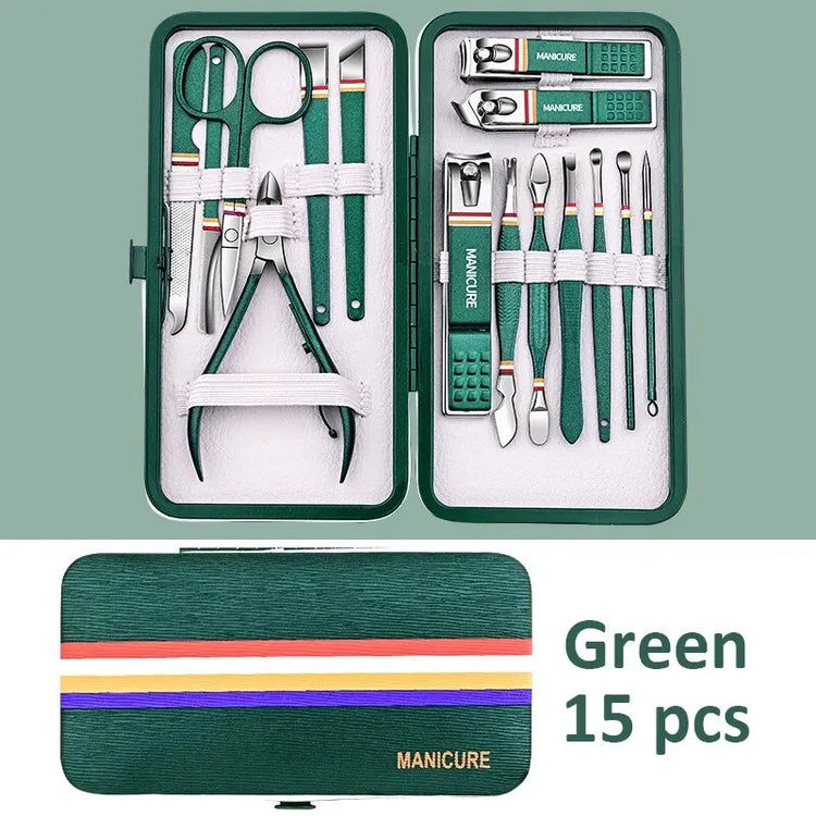 6-9 Pcs Manicure & Pedicure Kit with Leather Case – Stainless Steel Nail Clippers, Face & Foot Care Tools