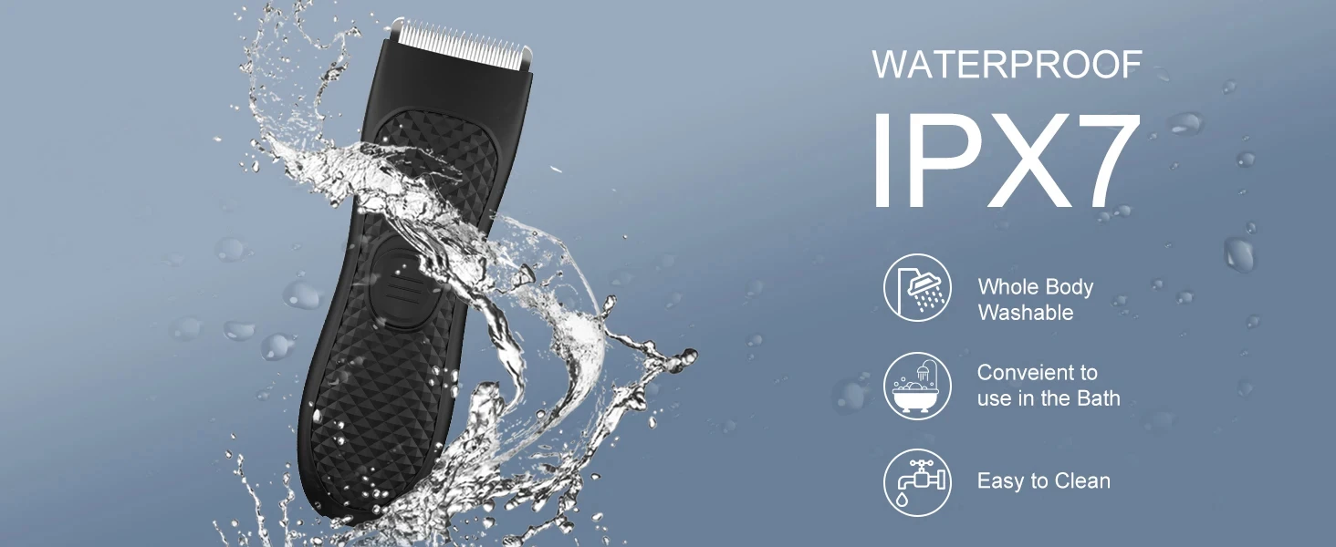 【IPX7 Waterproof】When you do Back hair trimmer / Chest hair trimmer / Pubic hair trimmer / Ball trimmer, it is easier to trim in the shower, as the water washes away the trimmings.